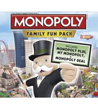 A new era of Monopoly for home consoles! The Monopoly Family Fun Pack gathers the 3 Monopoly Games: Monopoly PLUS: the classic Monopoly with a 3D animated board! My Monopoly, to create your very own board Monopoly Deal, a fast-paced and addictive Monopoly card-game Enjoy the classic Monopoly in new fun ways, with your friends and people all around the world!